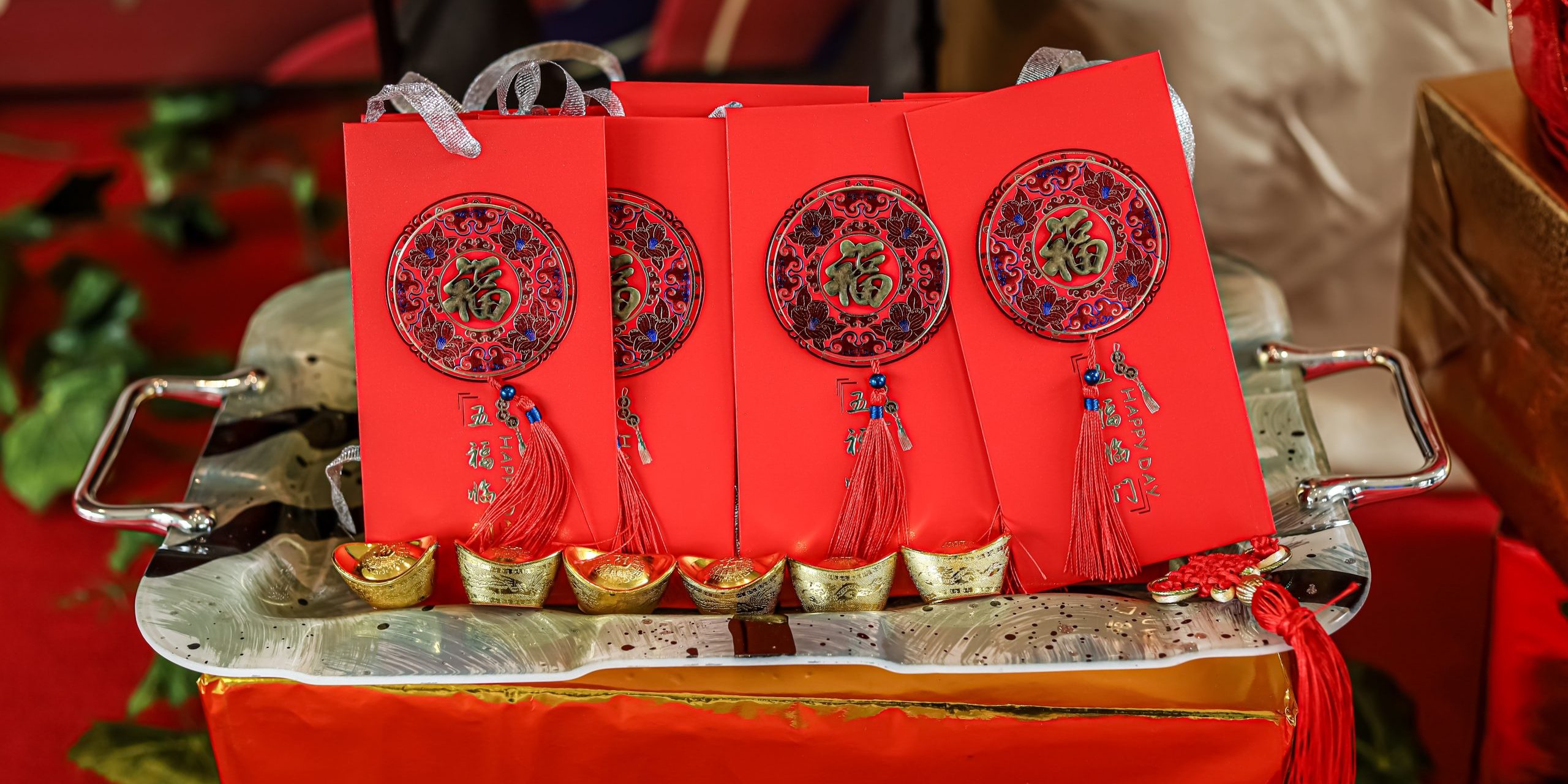 - Sobres rojos (hongbao). Los sobres rojos contienen dinero y se regalan especialmente a niños y jóvenes como símbolo de buenos deseos y prosperidad. Esta práctica fomenta la alegría y la generosidad durante las celebraciones.