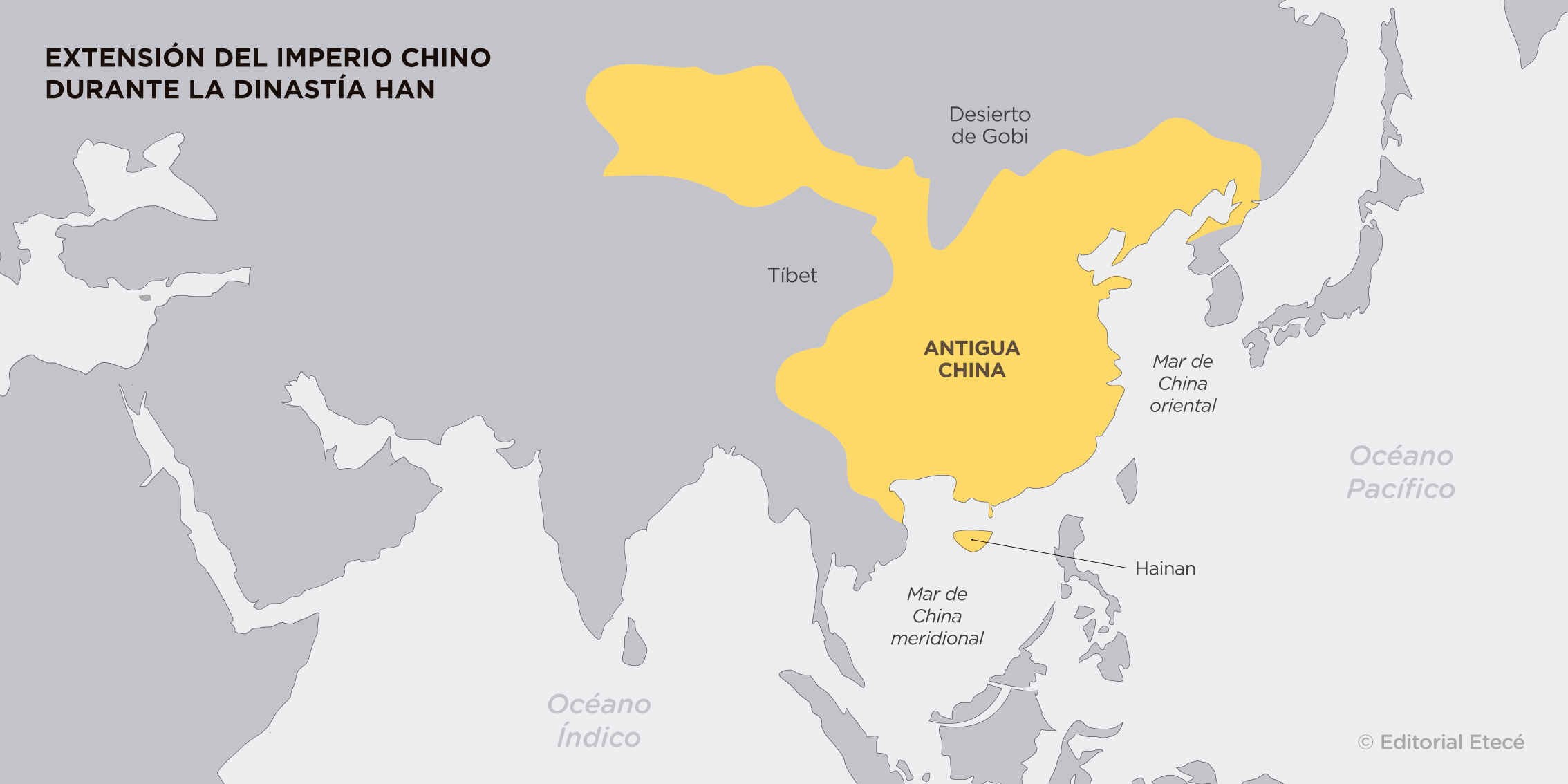 - La dinastía Han (206 a. C.-220 d. C.). Fue una era de esplendor para la civilización china, que adoptó el confucianismo como ideología oficial y extendió sus fronteras a gran parte de lo que es actualmente China. Sin embargo, culminó con un período de caos en el que se enfrentaron tres reinos distintos y que se conoce como el Período de los Tres Reinos (220-280 d. C).