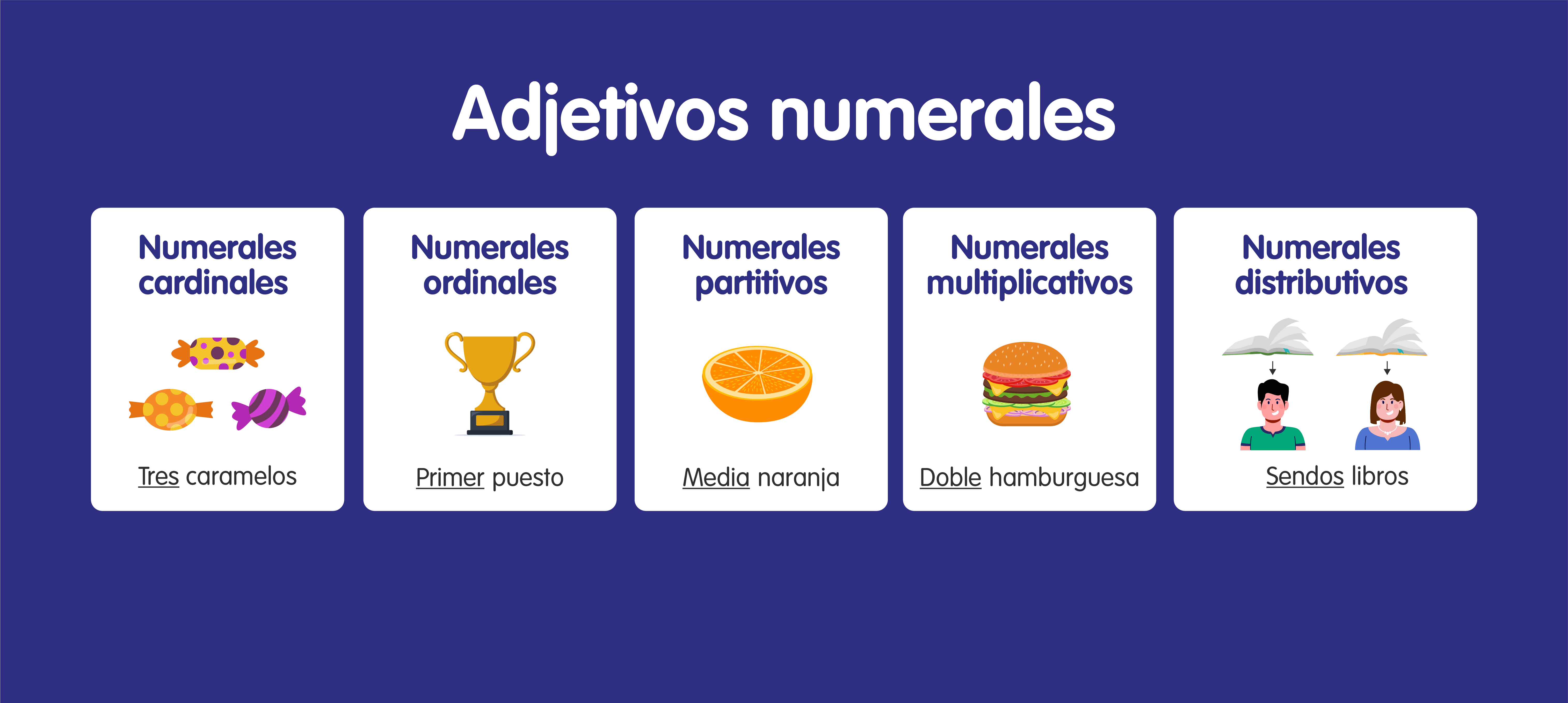 A continuación, algunos ejemplos de oraciones con adjetivos numerales.