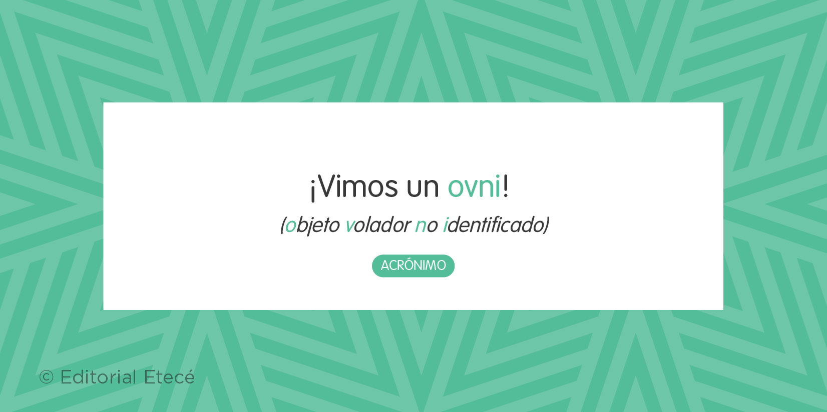 Un acrónimo es una palabra que se forma con las iniciales de otros términos o con la unión de partes de estos. Por ejemplo, la palabra ovni es un acrónimo formado por las iniciales de objeto volador no identificado, y Mercosur se forma con partes de los términos Mercado Común del Sur.