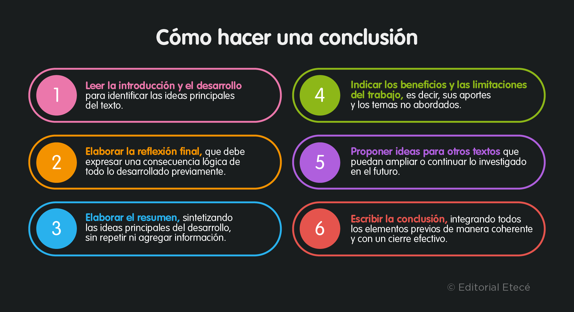 Para hacer una conclusión, es recomendable seguir una serie de pasos: