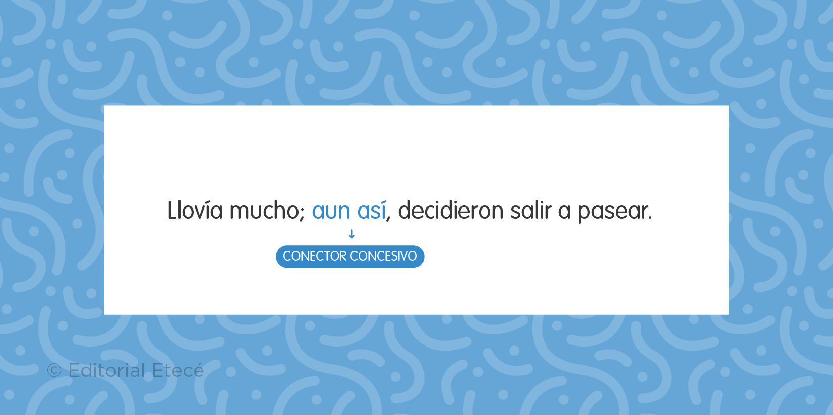 Los conectores concesivos son aquellos que introducen enunciados que presentan obstáculos para un evento, pero que no lo impiden completamente. También pueden indicar que una idea es contraria a otra. Por ejemplo: de cualquier forma, en todo caso, a pesar de, con todo, de todos modos, igual, no obstante.
