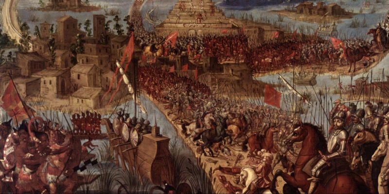 - La conquista de América (siglos XV y XVI d. C.). La conquista militar del Imperio azteca por parte de los españoles abrió el camino para la ocupación del resto del continente, el sometimiento de las sociedades americanas y el posterior proceso de colonización.