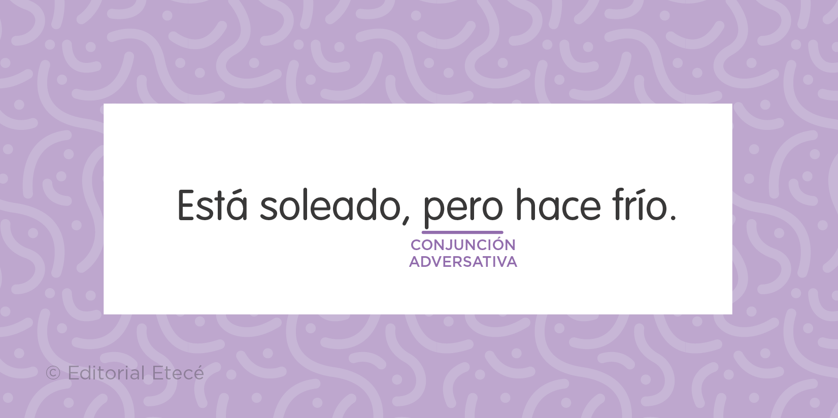 Dicho de otro modo, se usa una conjunción adversativa cuando se plantea una contrariedad entre los elementos enlazados. Por ejemplo: Esta ciudad parece muy tranquila, pero por la tarde hay mucho tráfico.