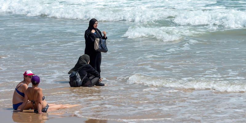 - Las mujeres musulmanas se cubren la piel casi por completo debido a los mandamientos religiosos que forman parte de su contexto cultural.