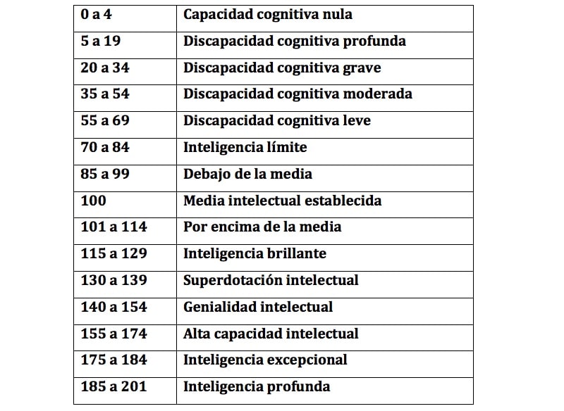 Tabla de coeficiente intelectual