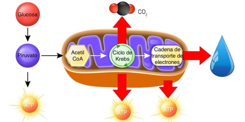 Más adelante, las moléculas de piruvato también se descomponen para obtener todavía más cantidad de energía química. Este proceso ocurre en un compartimento especializado dentro de las células, llamado mitocondria. Se denomina respiración celular al conjunto de reacciones catabólicas que suceden dentro de la mitocondria. Estas reacciones necesitan que exista oxígeno disponible.
