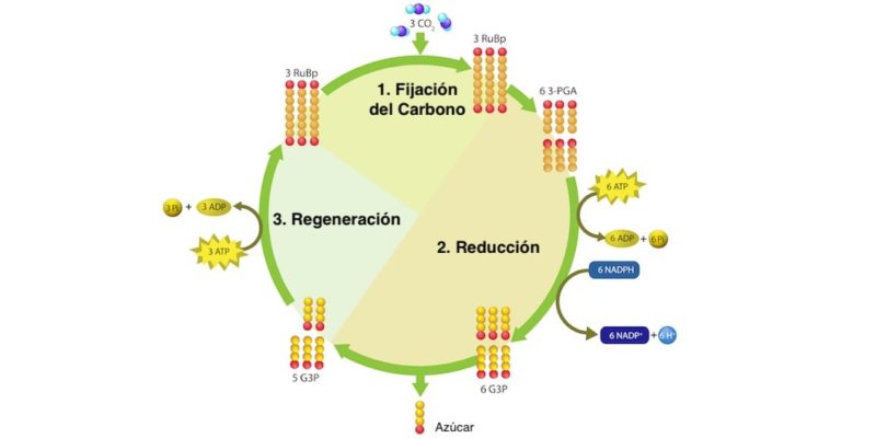 Las reacciones de este ciclo forman parte de la llamada “fase oscura” de la fotosíntesis (también conocida como “fase independiente de la luz”). En esta fase, se usan moléculas de alta energía producidas en la fase luminosa para formar carbohidratos a partir del dióxido de carbono (CO₂).