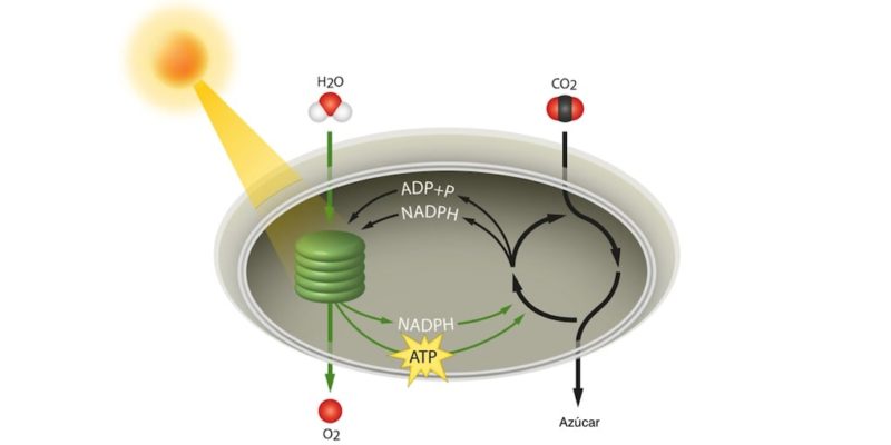 Este proceso de regeneración de RuBP requiere energía, que la planta obtiene de las moléculas de la fase luminosa de la fotosíntesis.