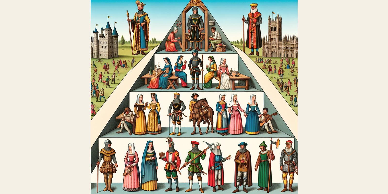 En la Edad Media, por ejemplo, las clases sociales estaban marcadas por el sistema feudal, donde los señores y la nobleza poseían tierras y poder, mientras que los campesinos y siervos trabajaban las tierras y producían los bienes para la supervivencia del conjunto social. Esta división era rígida, sin movilidad entre las clases.