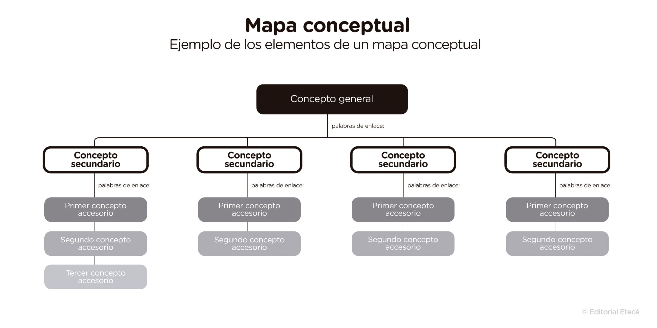 - Incluye los conceptos fundamentales de un tema. Indica cuáles son los conceptos principales y, en algunos casos, también los secundarios y los terciarios.