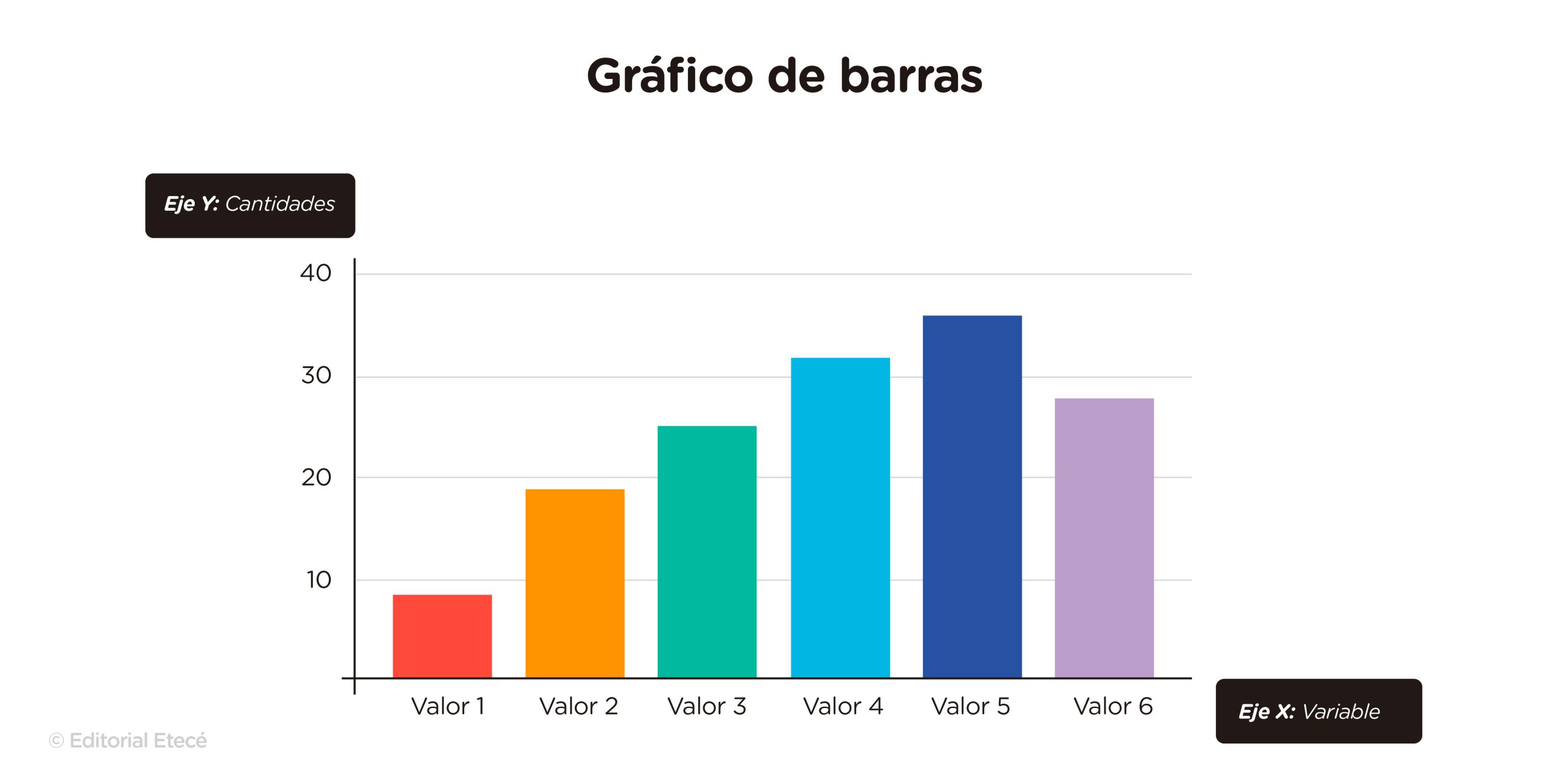 Un esquema o gráfico de barras es aquel que representa cómo se modifica una variable. Tiene dos ejes, uno horizontal (x), en el que se indican las variables, y otro vertical (y), en el que se indican las cantidades que pueden adoptar las variables.
