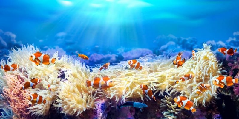 - Arrecifes coralinos. Representan una de las mayores concentraciones de vida en el mundo submarino y tienen lugar dentro y alrededor de las estructuras coralinas que se forman en los mares. Debido a la abundancia de materia orgánica que vive en ellos, numerosas especies de peces, crustáceos y moluscos pequeños sirven, a su vez, de alimento para depredadores.